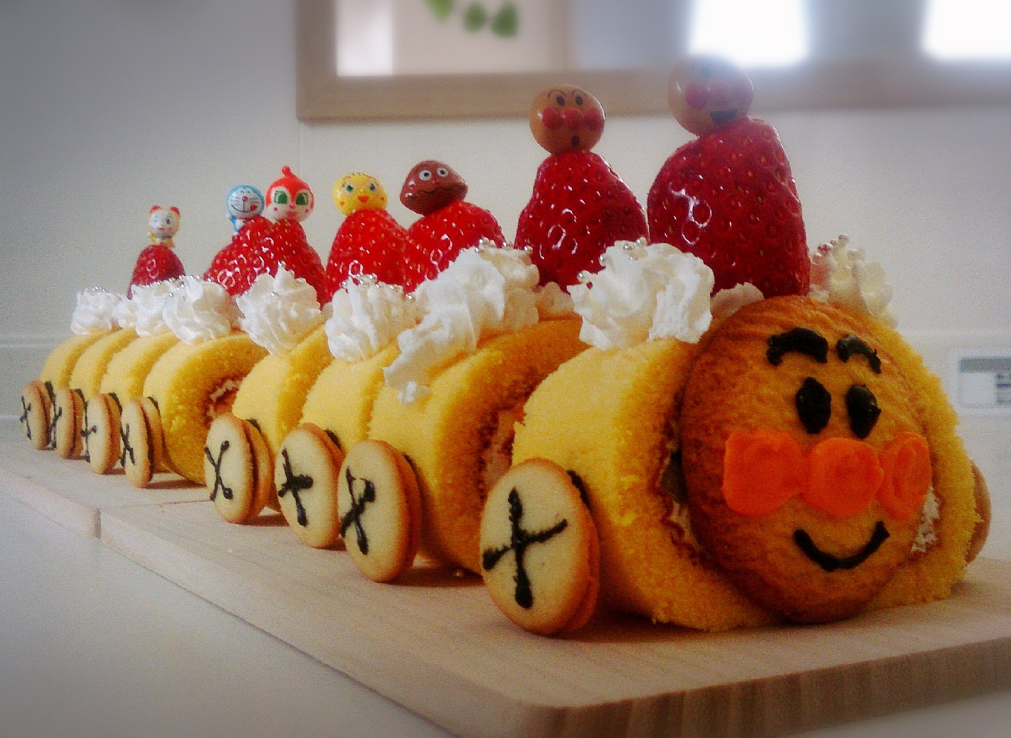 ロールケーキで簡単 アンパンマンの電車ケーキ レシピ 作り方 By ばれりーなまま 楽天レシピ